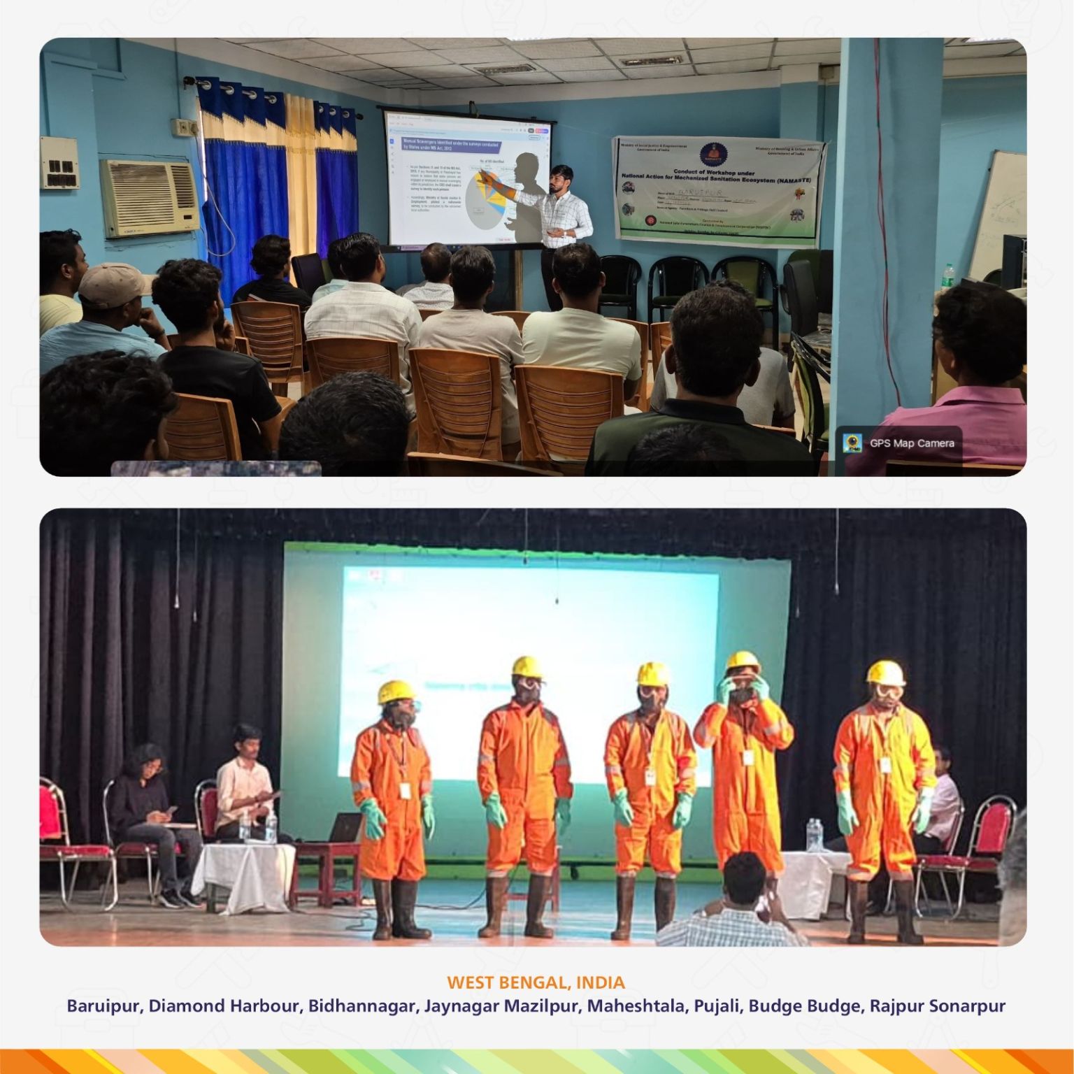 FFSC has successfully conducted a series of eight impactful workshops on the theme “Prevention of Hazardous Cleaning of Sewers and Septic Tanks” across multiple cities in West Bengal, including Baruipur, Diamond Harbour, Bidhannagar, Jaynagar Mazilpur, Maheshtala, Pujali, Budge Budge, and Rajpur Sonarpur.