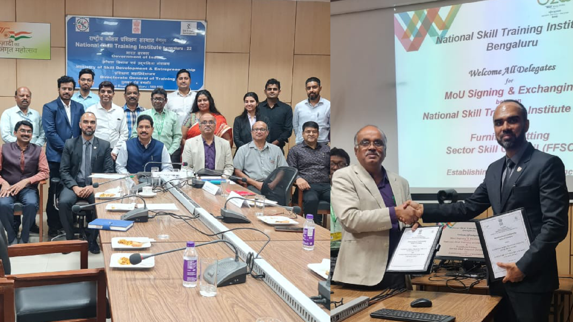 FFSC signed MOU with NSTI Bengaluru for its 2nd FFSC Center of Excellence. The Center of Excellence would provide short-term courses in the furniture and fitting sector to offer 100% employment opportunities. Special Thanks to Mr. Satyan Thukral (FFSC Executive member) & Team Caple for extending their support for setting up the COE.