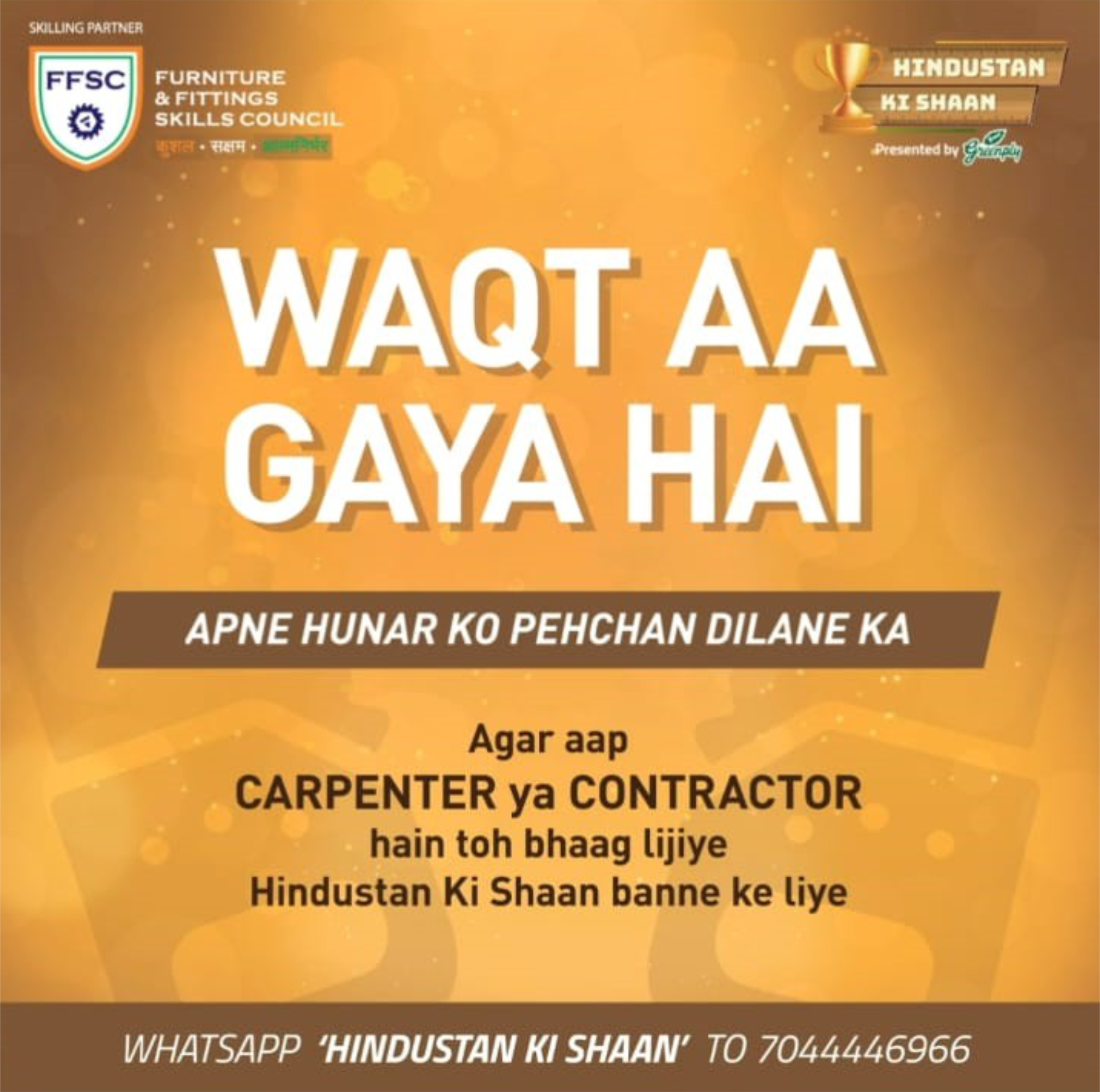 FFSC has partnered with Greenply for ‘Hindustan Ki Shaan’ which would be recognizing special talent in carpentry or Contractor.