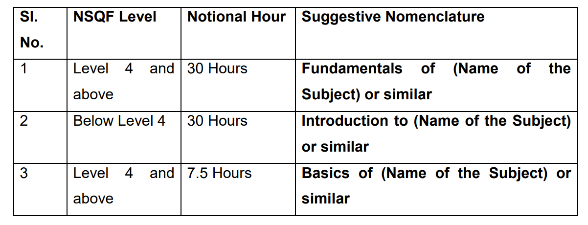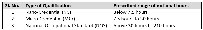 - The Committee was apprised of the decision taken with respect to the range of notional hours for the NSQF alignment and approval of standalone Nano Credentials (NCs), Micro-Credentials (MCrs), and National Occupational Standards (NOSs).