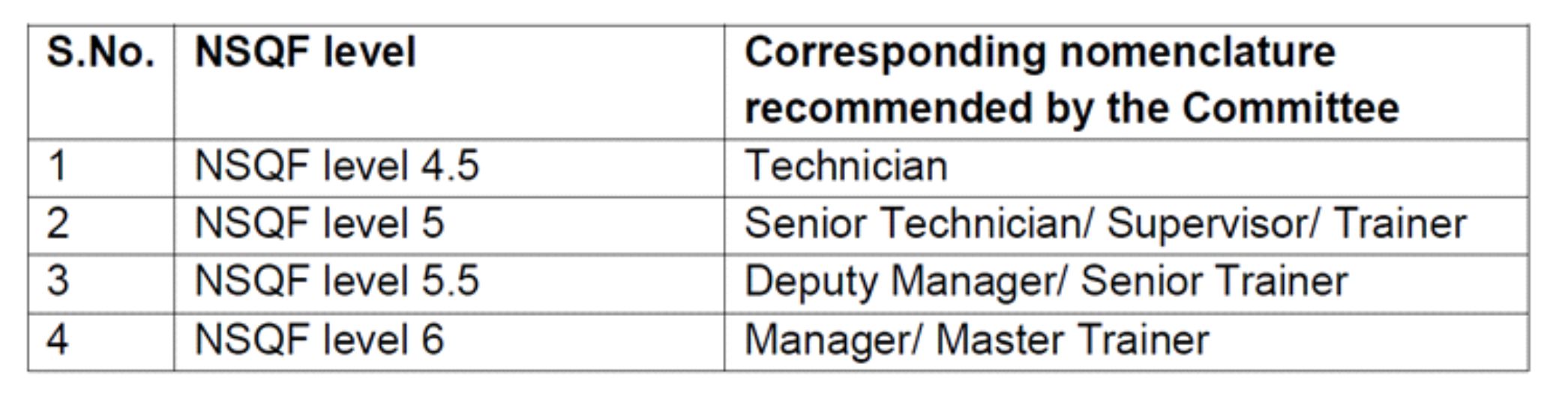 - The committee directed that OJT shall only be included as mandatory component in all the qualifications submitted by ABs. Along with this, all ABs while submitting qualifications for NSQF alignment and approval to mandatorily mention the relevant sub-sectors along with the sectors.