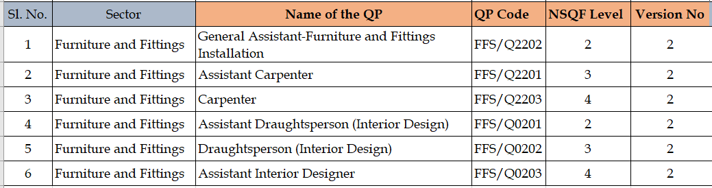 - Multipurpose Draughtsperson (Design and Build) at Level 3 with specializations in Interior Designing and Furniture Designing.