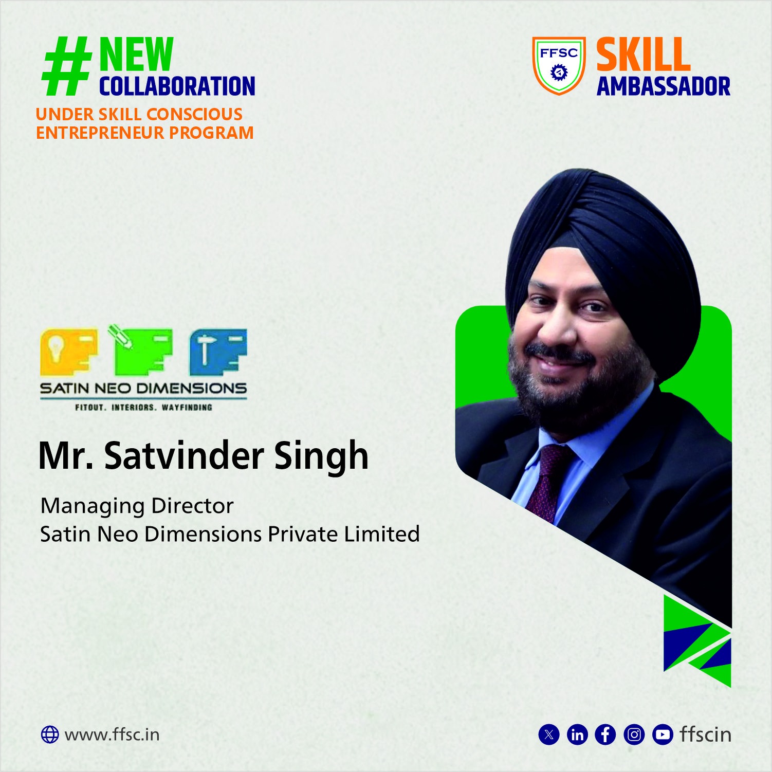 We are glad to introduce our new SkillAmbassador Mr. Satvinder Singh, Managing Director at Satin Neo Dimensions Private Limited .