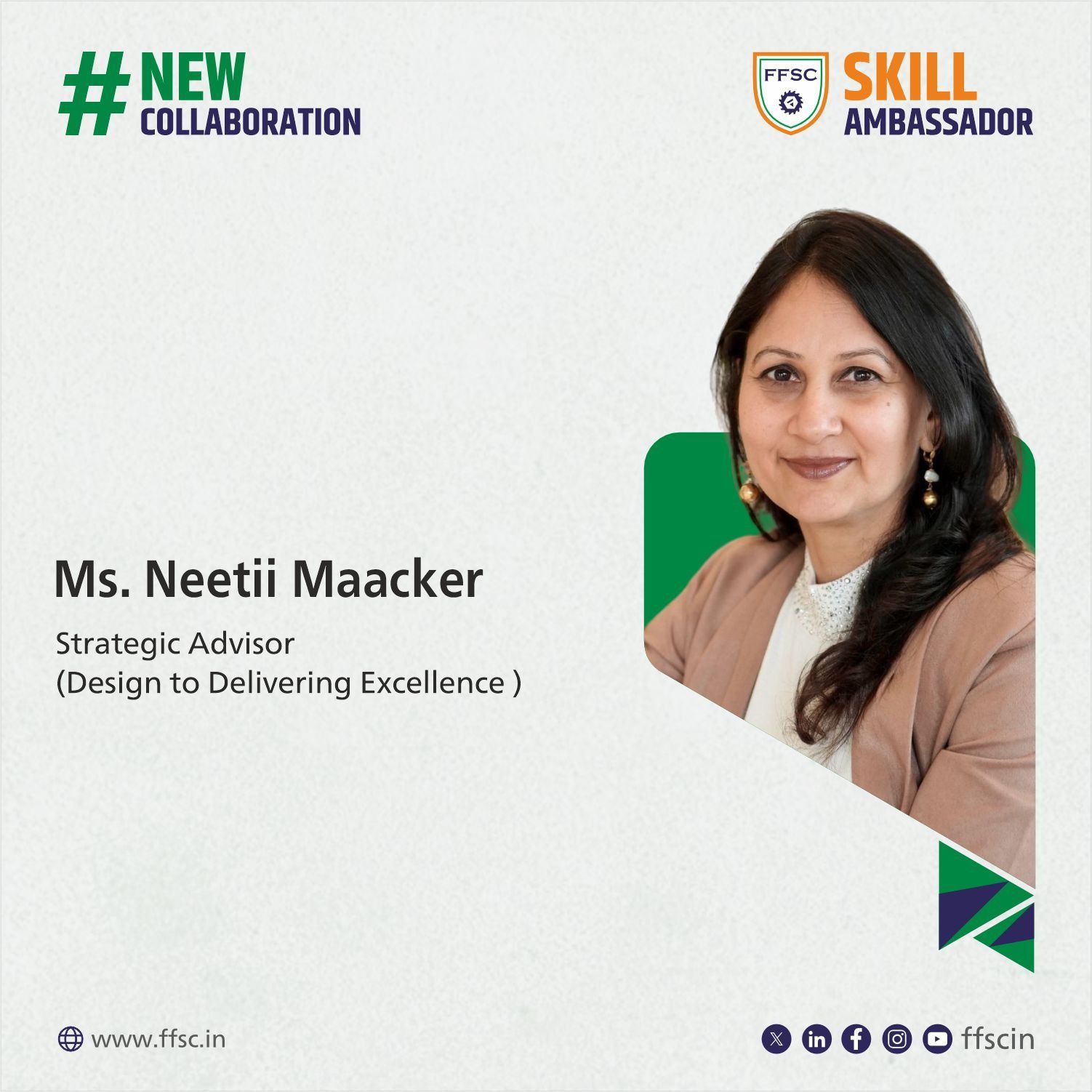 We are glad to introduce our new #SkillAmbassador, Ms. Neetii Maacker, Consultant / strategist Furniture Industry from FFSC Regional Skill Chapter - Delhi/NCR .